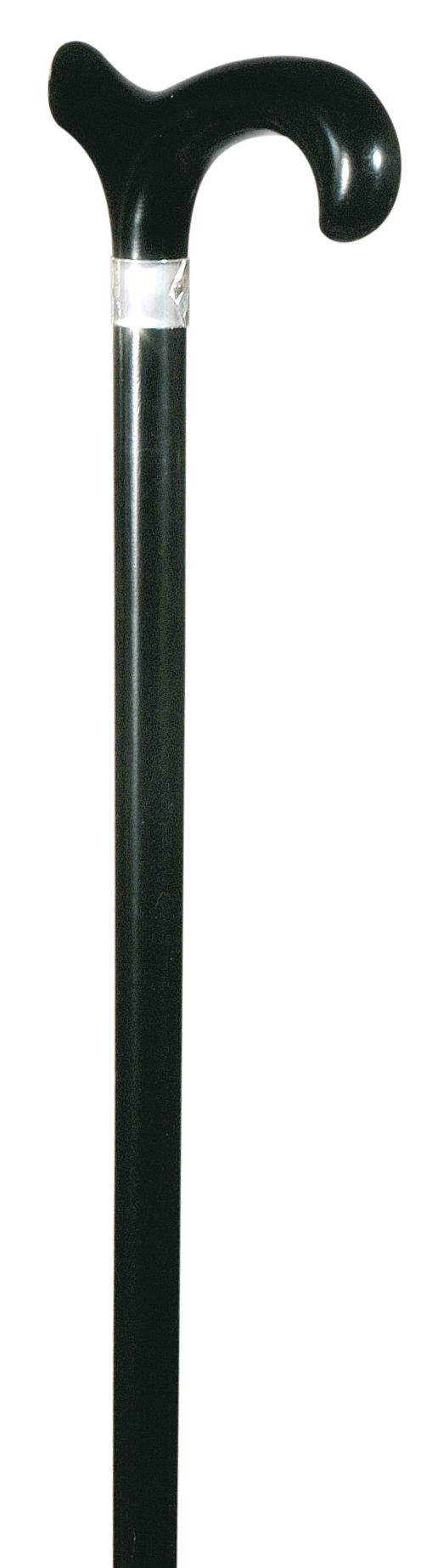 An elegant, formal cane suitable for use in town and in the evenings. The hardwood shaft and handle are painted black and the cane is fitted with a neat nickel collar and a rubber ferrule. The derby handle offers excellent support to the hand, and may be hooked over the arm when not in use. Available in ladies