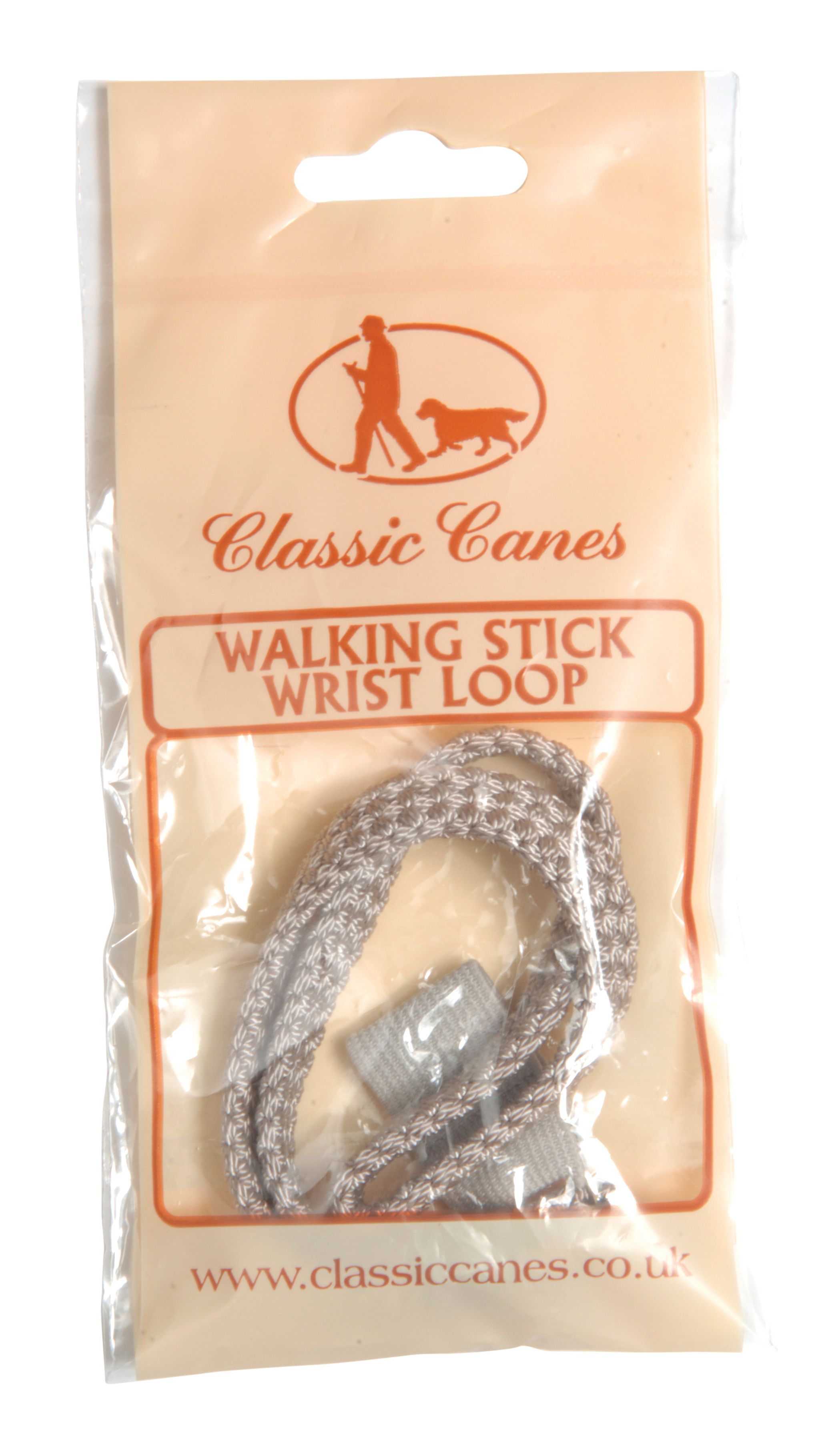 A very useful accessory for the walking stick user who does not like to drop their walking stick. The elastic collar fits around the neck of the walking stick (to fit, slide up stick from ferrule end. If the stick is fitted with a rubber ferrule, this must be removed temporarily in order to fit the wrist loop). The cord loop may then be placed around the user's wrist, allowing them to have both hands free without dropping or losing their walking stick.