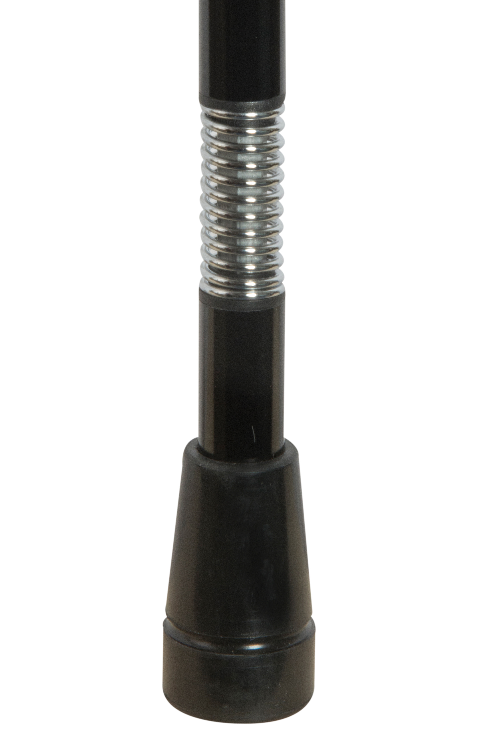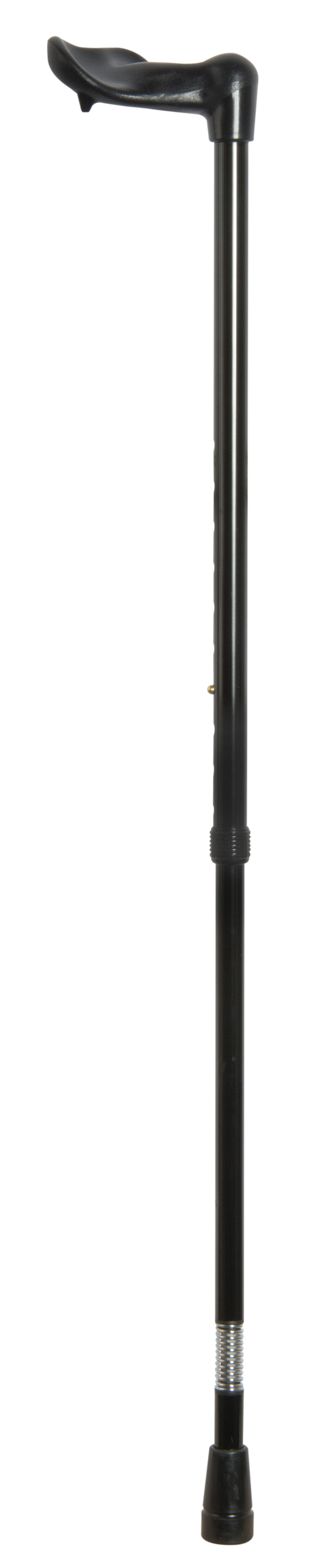 A very practical and comfortable walking stick. The shaped handle spreads the users weight across the palm of the hand, making it comfortable to use for extended periods of time. The visible shock absorber mechanism reduces the jarring caused to the wrist and elbow joints each time the cane makes contact with the ground. The plastic handle and aluminium shaft are both black; the shock absorber mechanism is chrome plated for a smart appearance. Fitted with a non-slip rubber ferrule, the cane is height-adjustable between 77 and 100cm (30”-39”). It is fitted with a screw-tightening attachment, to ensure a firm fit and no irritating rattling sounds when the cane is in use. Cane available in left or right handed versions; often bought as a pair. Ferrule diameter 19mm. Item weight is 450g.