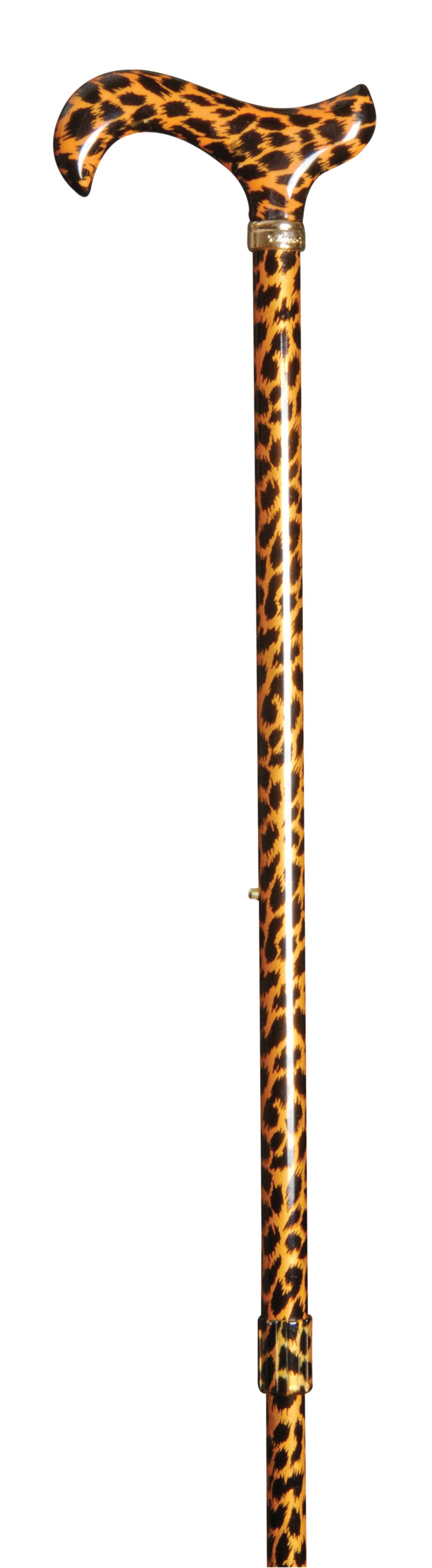 An eye-catching and fashionable cane for the walking stick user who wants to have fun! The derby handle provides excellent support and the cane is adjustable in height between 77cm-100cm (approx. 30"-39"). It is fitted with a non-slip rubber ferrule. The all-over pattern features a golden-yellow background with black leopard spots. Ferrule diameter 16mm. Item weight is 315g.